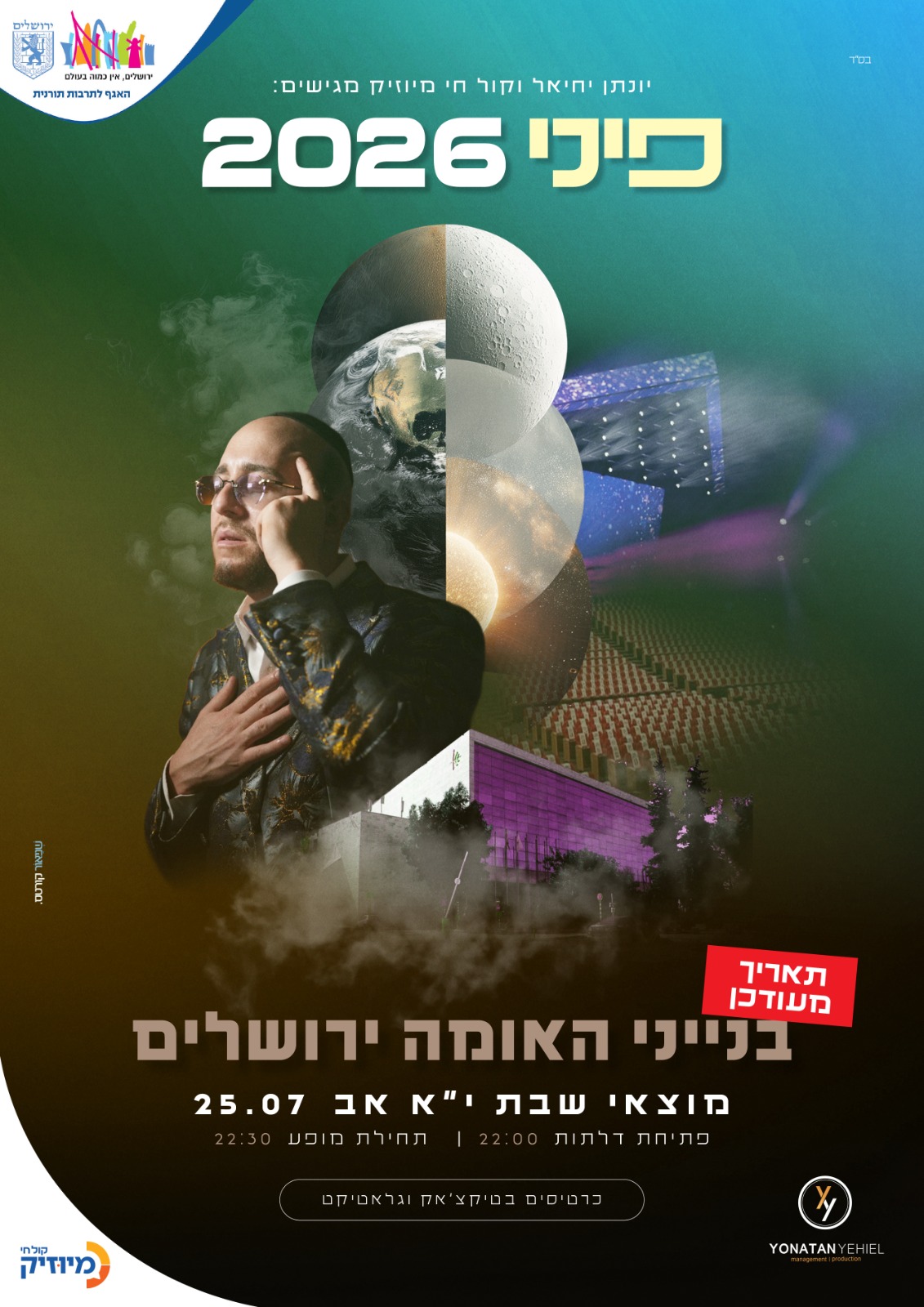 בנייני האומה שמחים לארח בשיתוף יונתן יחיאל וקול חי מיוזיק את הזמר
